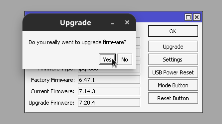 Na janela de confirmação que pergunta Do you really want to upgrade firmware? confirme clicando em Yes: