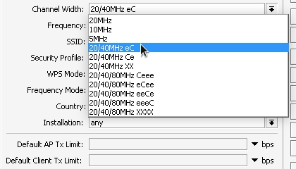 Pelo que pesquisei, o MikroTik permite combinar canais de 20 MHz para fornecer 40 ou 80 MHz de largura de banda. Não apenas isso, ele também permite definir qual será o canal principal (control channel, representado pela letra C) e quais serão os canais estendidos (e) que ampliam a largura total. Você pode ajustar a posição do canal principal para melhorar a compatibilidade com os dispositivos conectados e o desempenho e a interferência da rede. O recomendado é que o canal principal esteja na frequência mais limpa.
